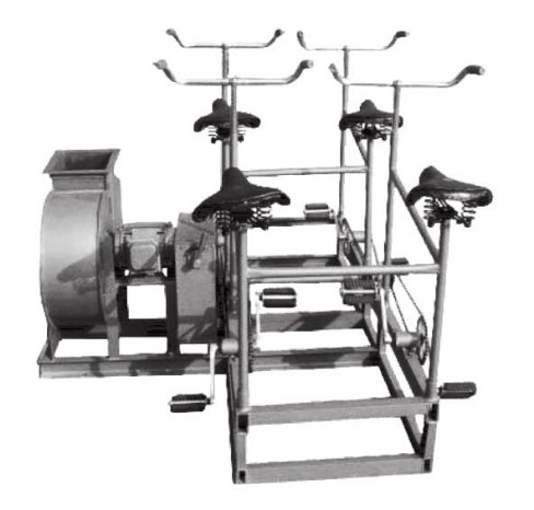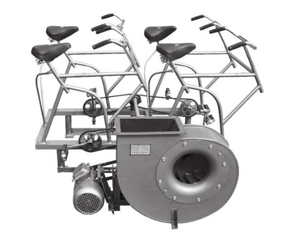SR900 型腳踏電動(dòng)兩用風(fēng)機(jī)供地下人防通風(fēng)配套使用。當(dāng)供電正常時(shí)電動(dòng)驅(qū)使電源遭切斷時(shí),采用人力帶動(dòng)風(fēng)機(jī)通風(fēng)。
